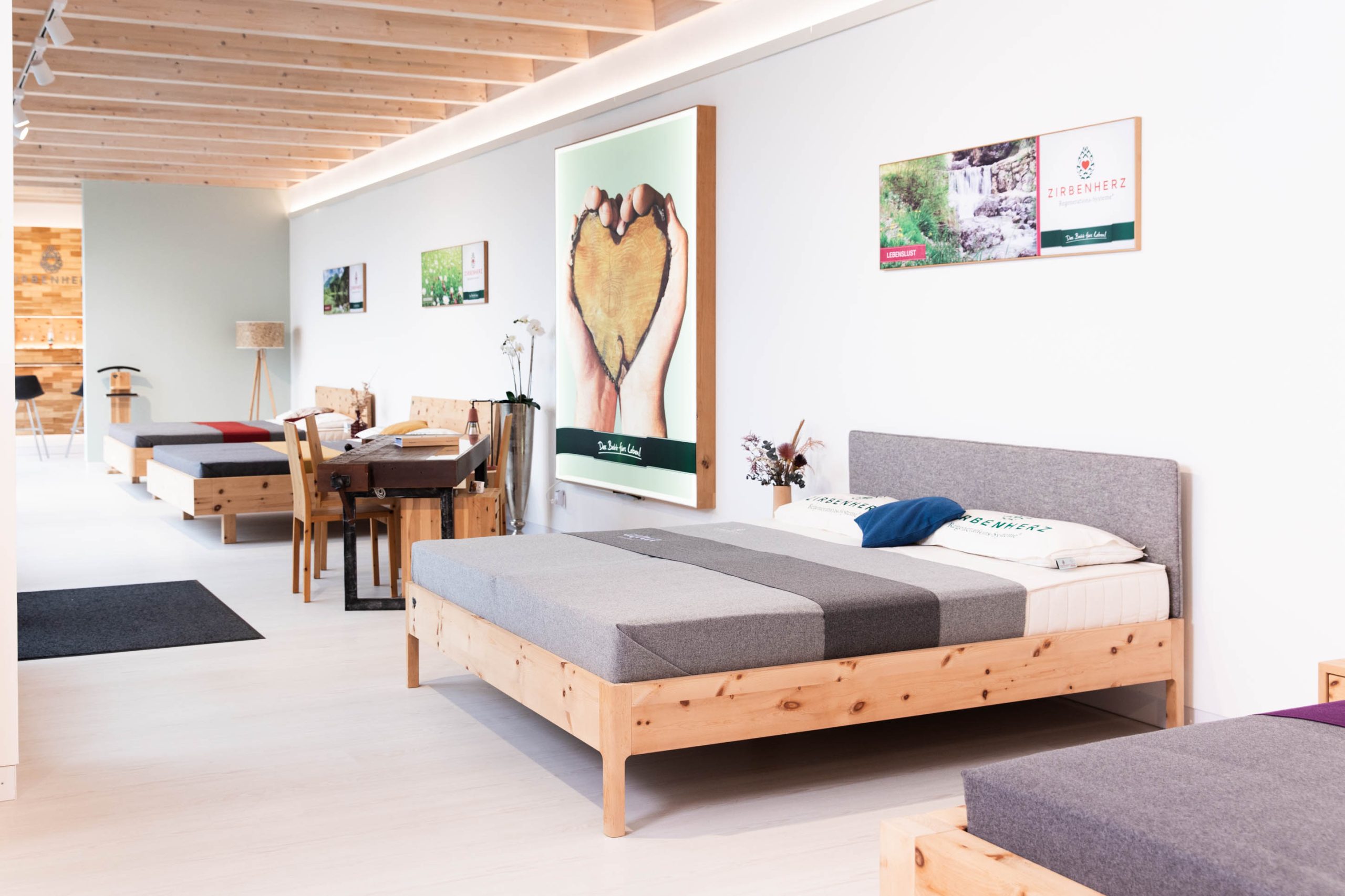 In der Manufaktur in Althofen entsteht das Zirbenherz®-Bett auf besonders natürliche Weise im Familienbetrieb. Die Natur dient dabei als vorbildliche Inspirationsquelle für ihr ganzheitliches und perfektes Schlafsystem: von der kraftvollen Alpenzirbe über das anatomisch geformte Federelement bis zu den eigens entwickelten und metallfreien Natur-Bettverbindungen. Das astfreie Zirbenholz wird exklusiv von der heimischen Zirbe aus den Nockbergen bezogen. Durch aufwendige Forschungsarbeit gelang es, ein metall- und schadstofffreies Bett zu entwickeln. Die Vielfalt der Disziplinen, die in die Gestaltung des Bettsystems einfließen, schafft ein umfassendes Wirkungsfeld. Das Zirbenbett-Schlafsystem pflegt nicht nur Herz und Rücken, sondern stärkt auch Körper und Seele. Durch ergänzende Zirben-Kleinprodukte schafft die Zirbenherz®-Manufaktur ein authentisches Wohlfühlklima in jedem Zuhause.